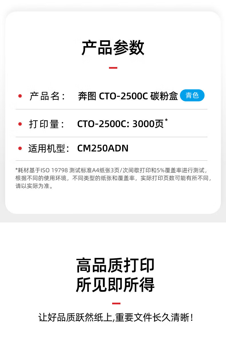 奔图 CTO-2500C 粉盒 青色 约3000页
