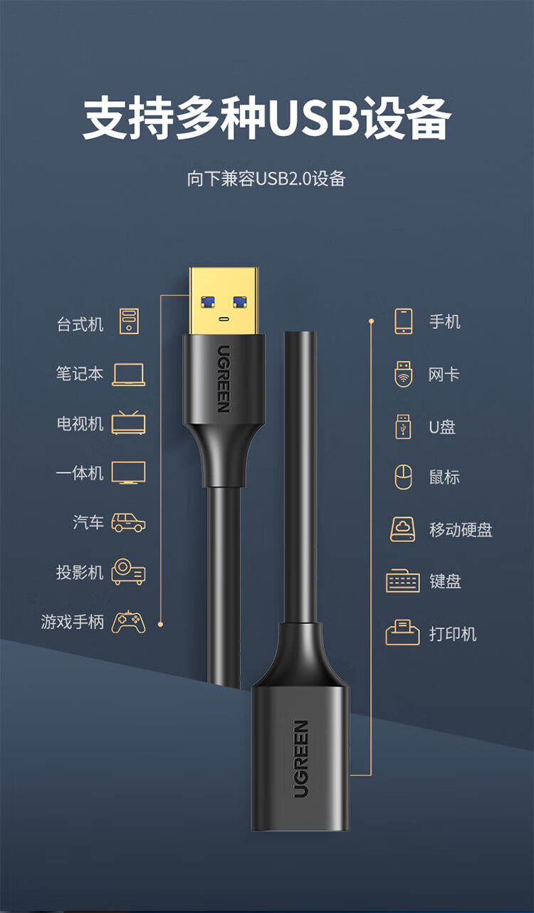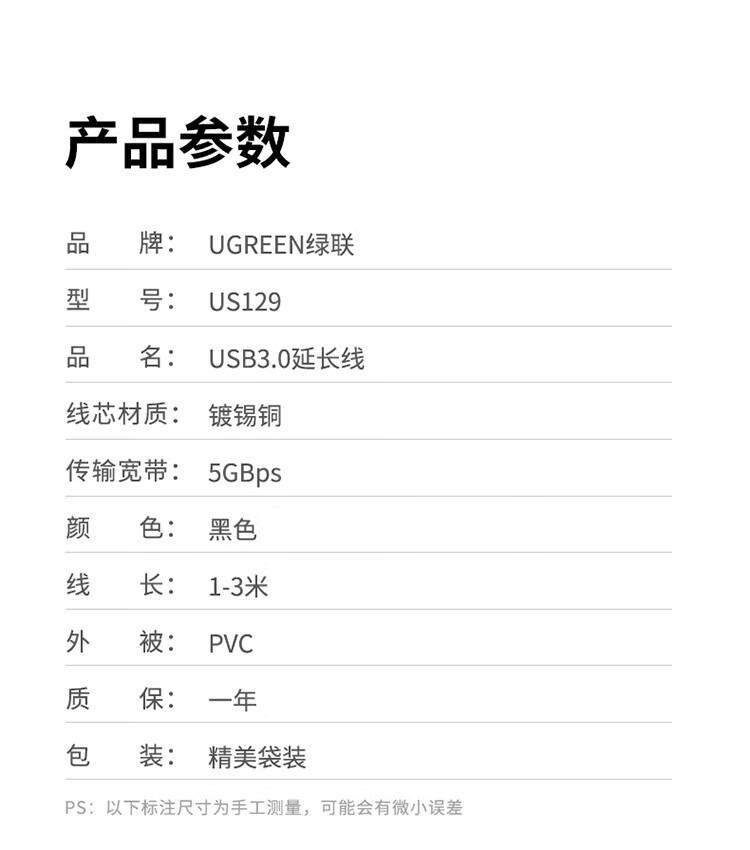 绿联 USB 3.0延长线 10368 1米