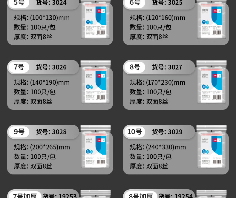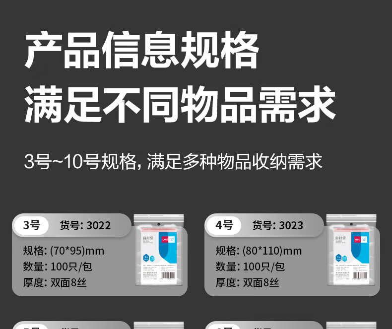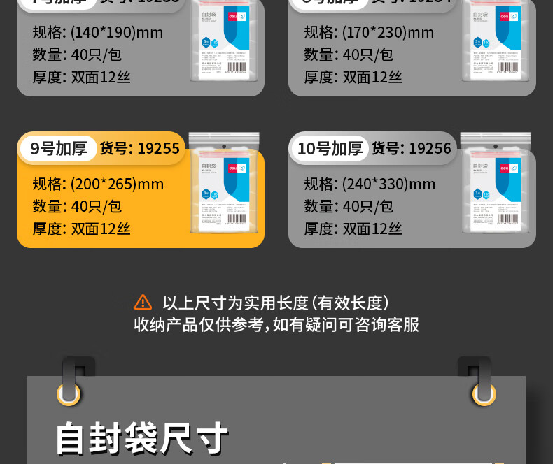 得力 19255 食品自封袋 9号 20*26.5 加厚 40只/包