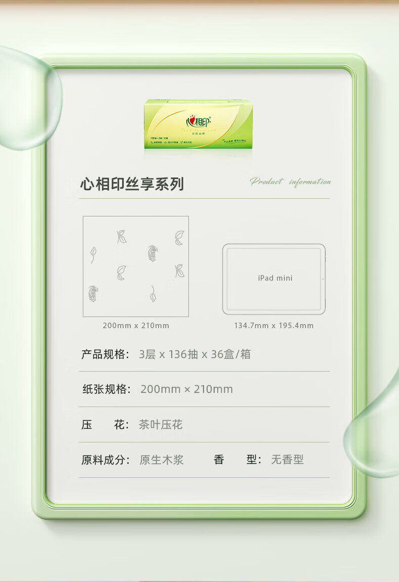 心相印 FT15136 抽纸 盒装 茶语丝享 3层136抽 36盒/箱