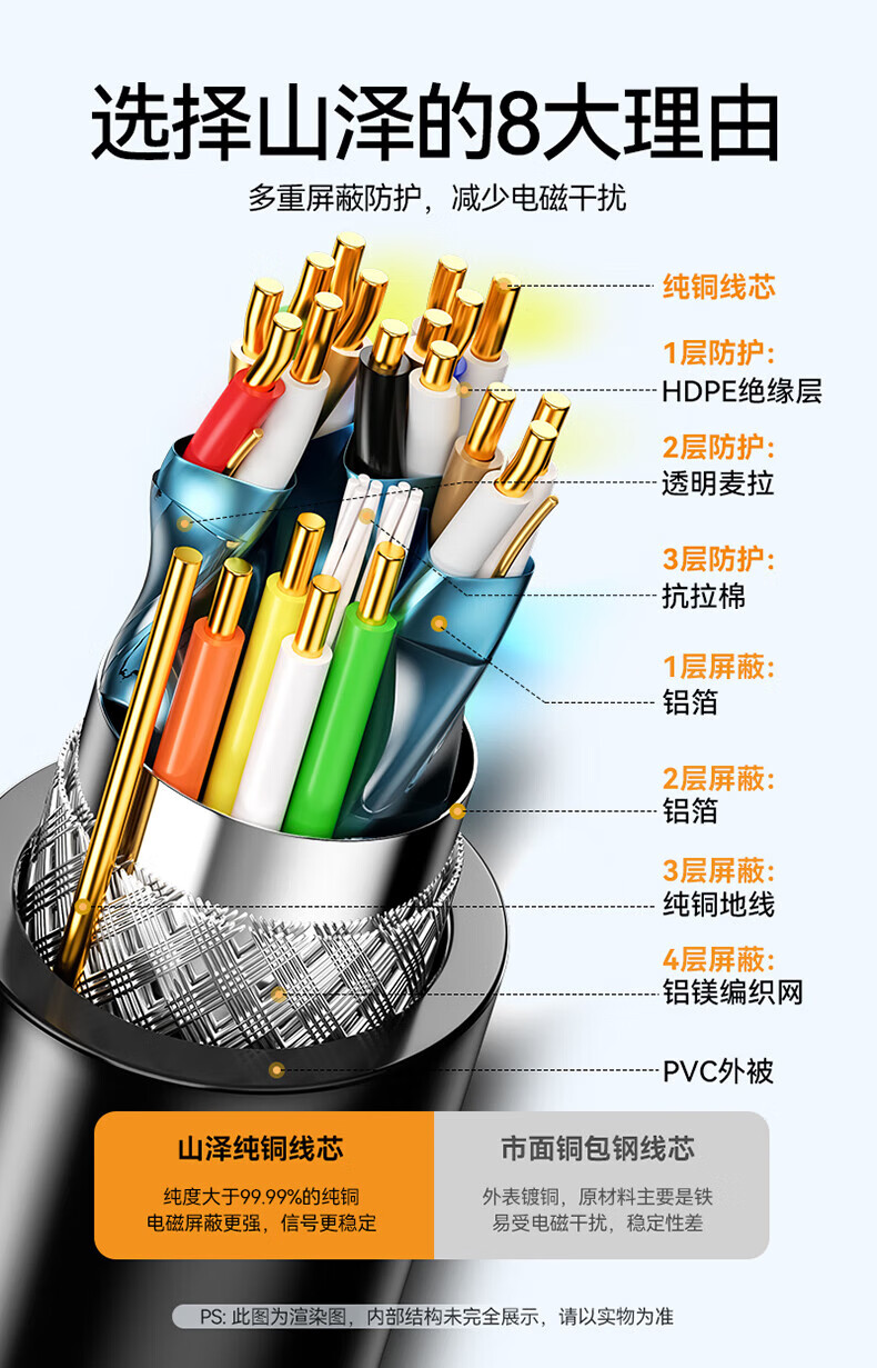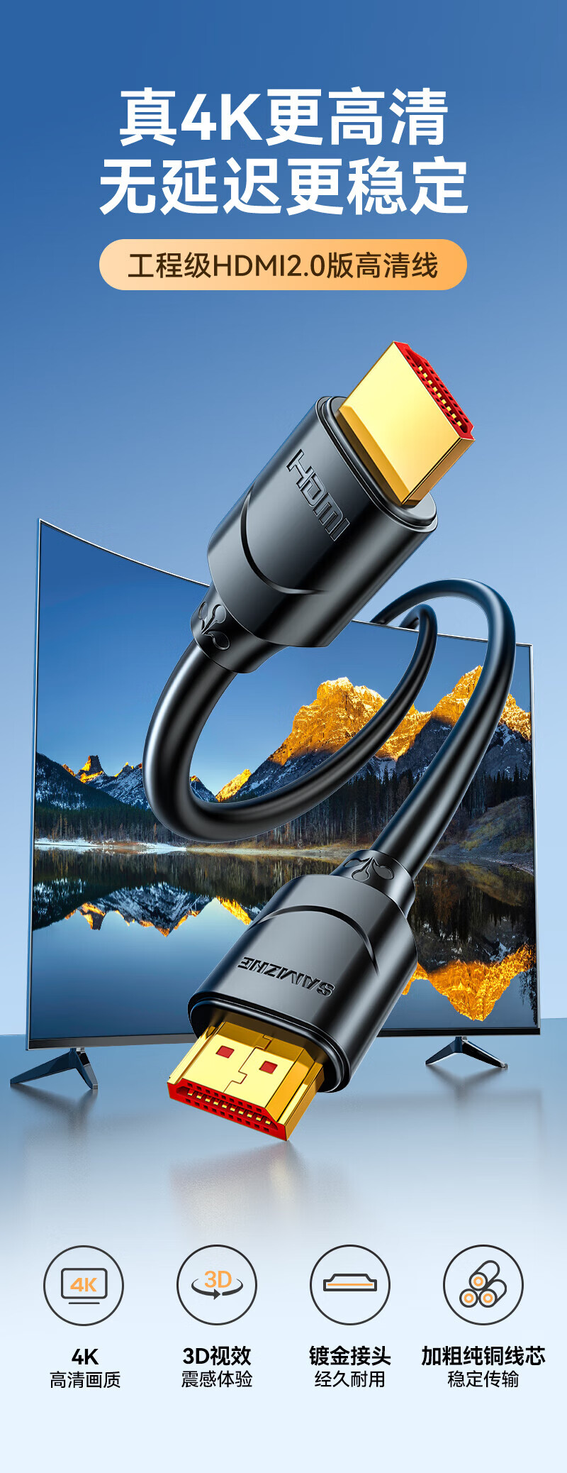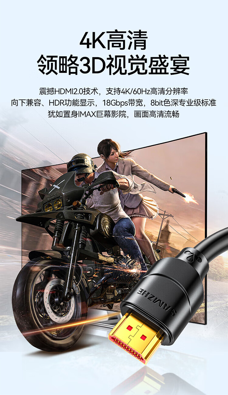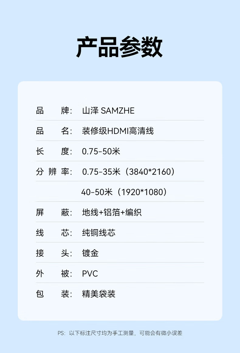 山泽 HDMI线 数据连接线 20米