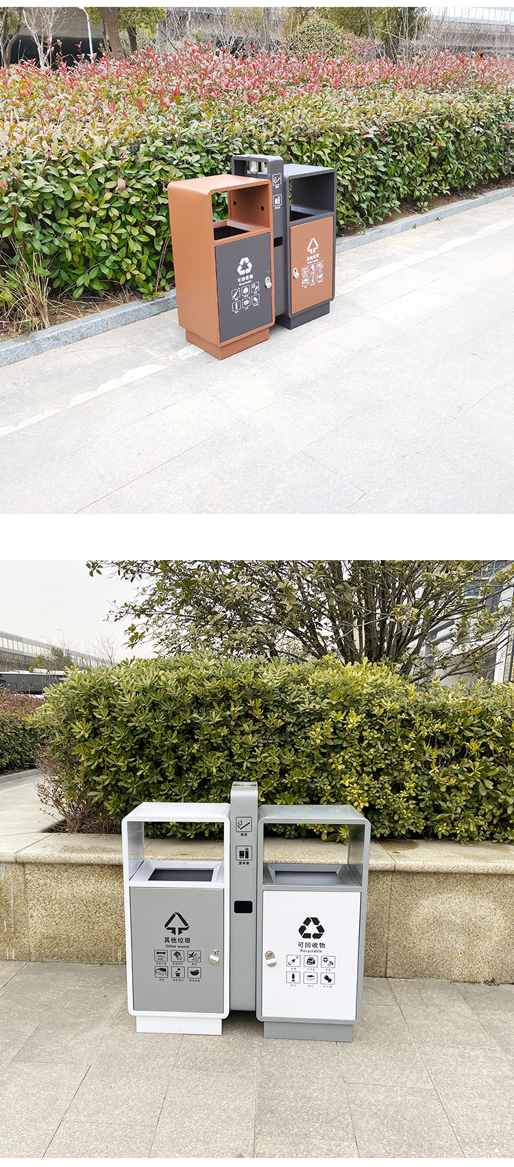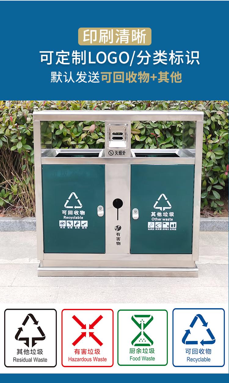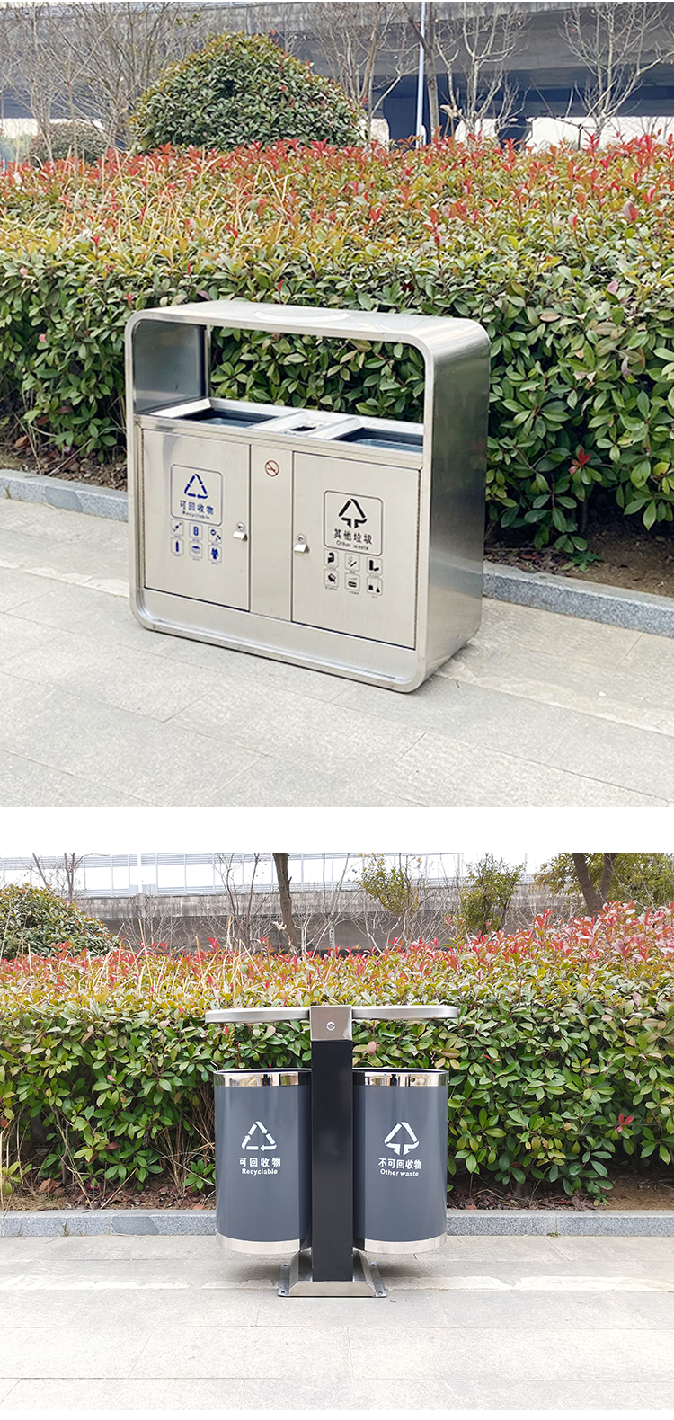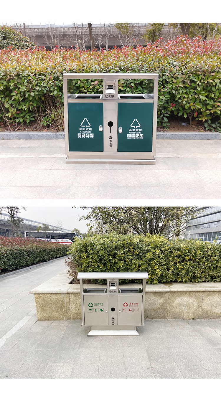 户外两分类 垃圾桶 不锈钢 100*36*98cm