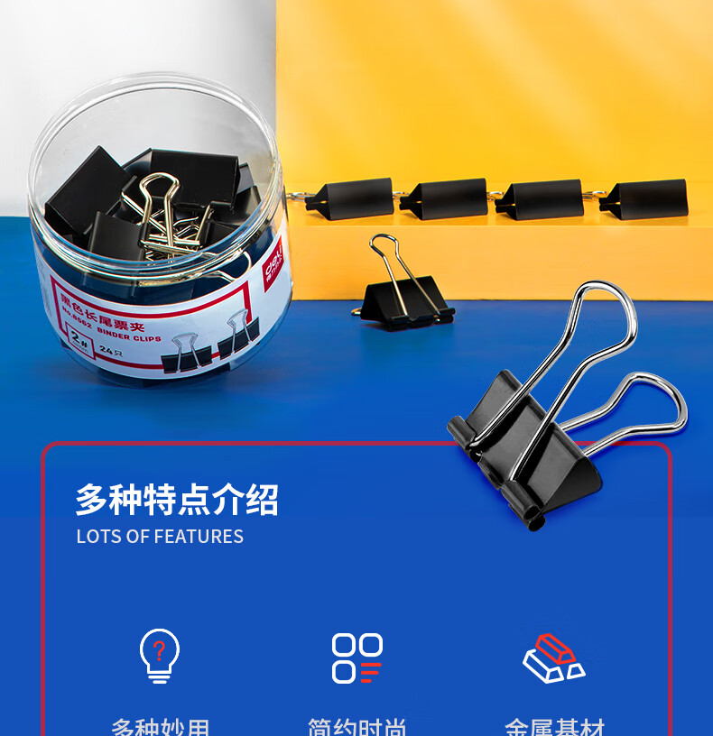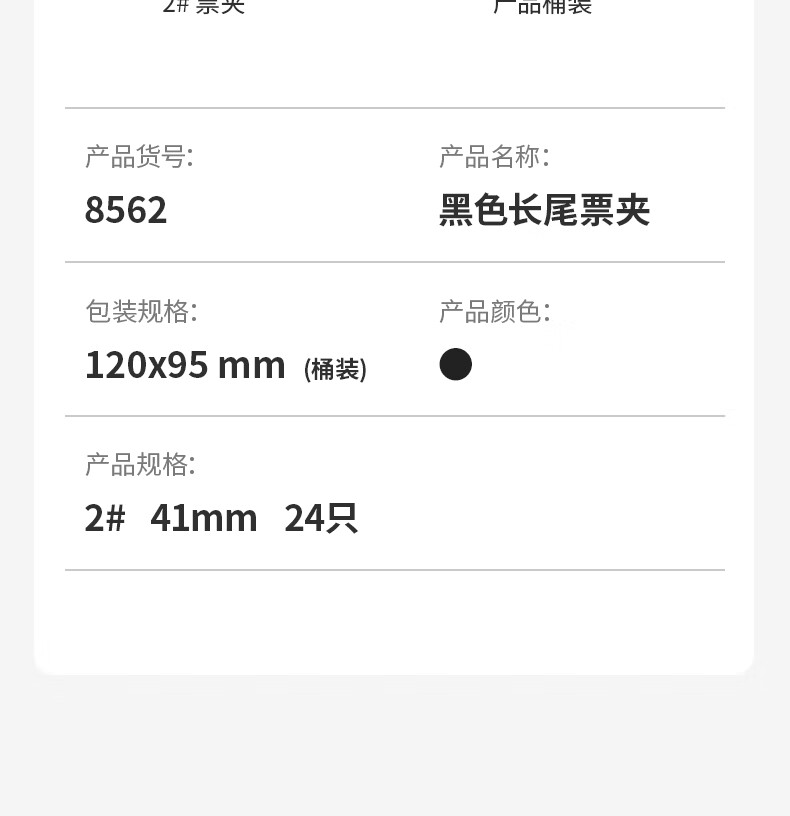得力 8562 黑色长尾票夹 2# 41mm (24只/筒)